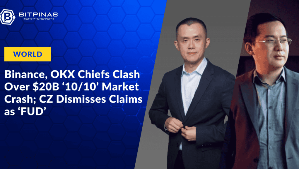 This article is published on BitPinas: Binance, OKX Chiefs Clash Over $20B ‘10/10’ Market Crash; CZ Dismisses Claims as ‘FUD’