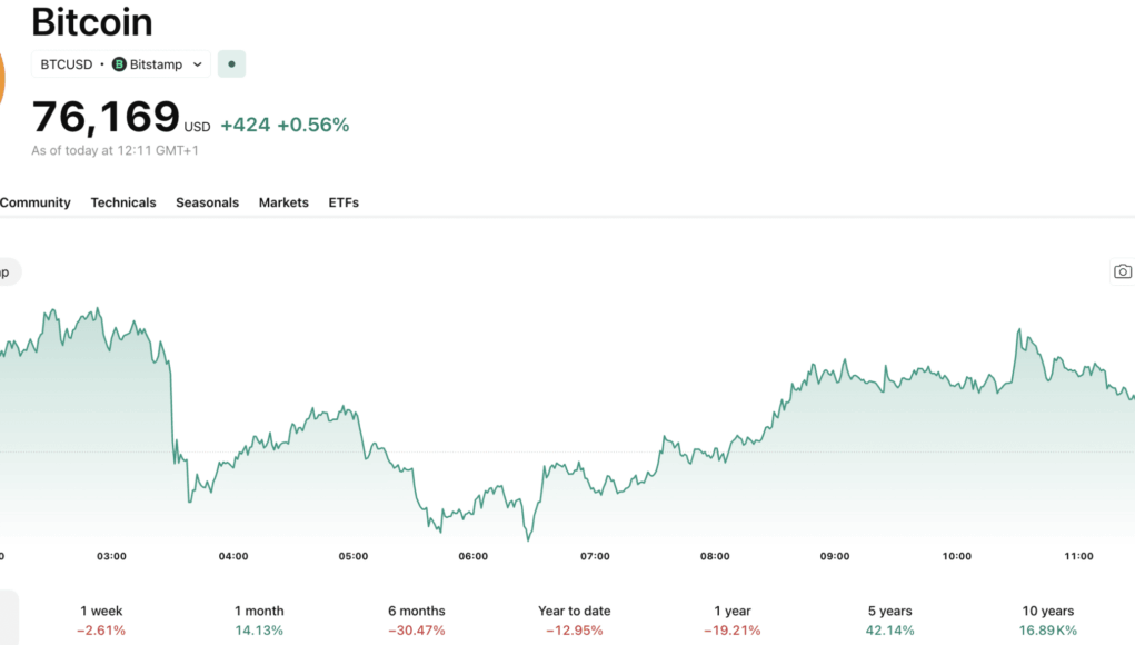 This news dropped as the Bitcoin price dropped -1% overnight, as it sits at just over $76,000, as ongoing tensions between Iran and the US continue to dictate the market direction.