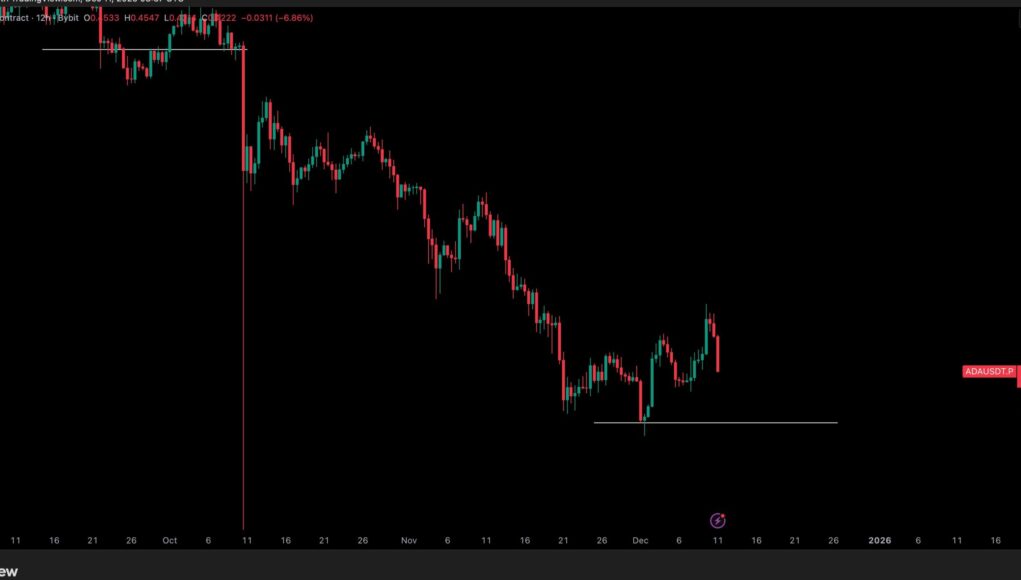 The latest 12-hour candles show a short attempt to recover from the early-December dip near the $0.39 support zone. But the move faded fast. The analyst summed up the mood in a blunt caution: “New lows incoming for ADA.” His view adds to the concern that the market may not be finished sliding yet.