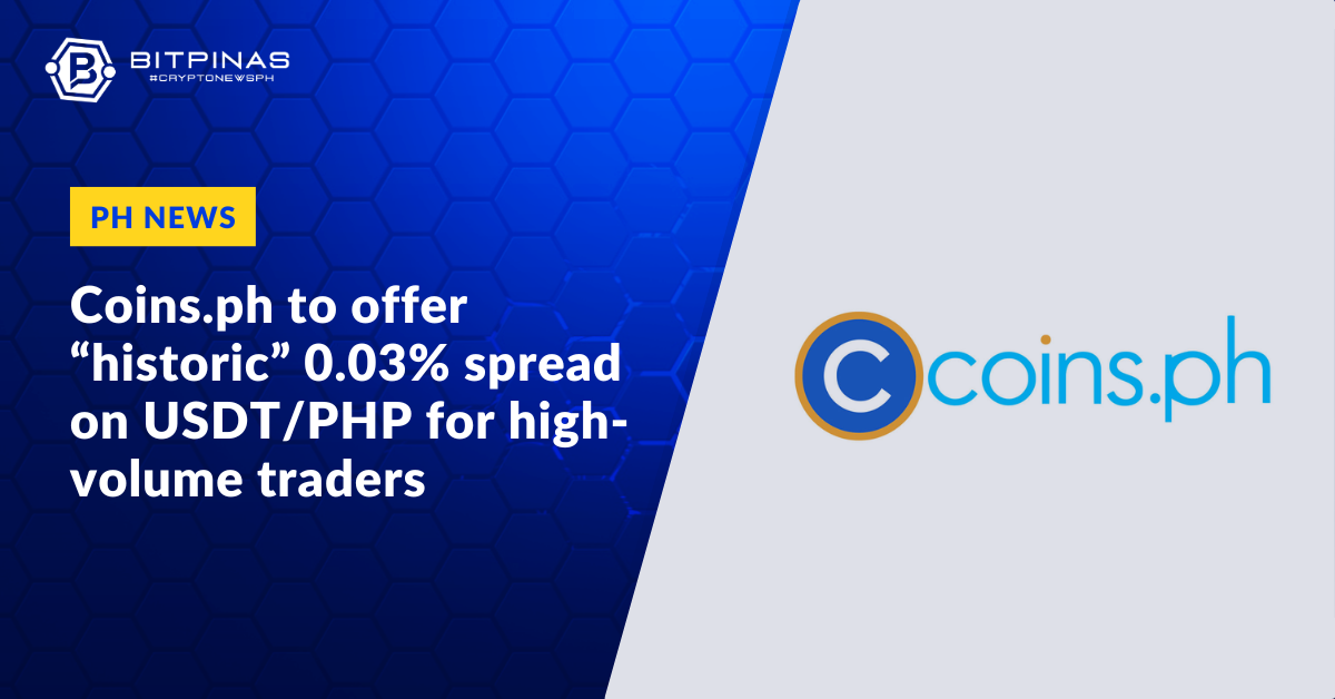 This article is published on BitPinas: Coins.ph Cuts USDT/PHP Spread to Historic Low of 0.03% for High-Volume Traders