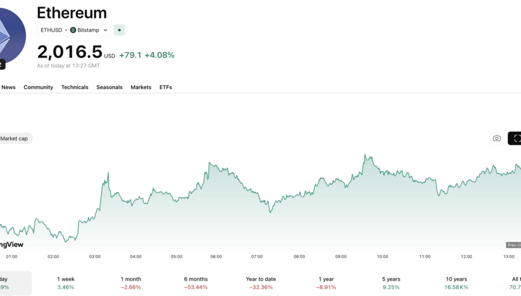 The ETH price is currently up +3.3% today, bouncing around just over $2,000, leaving investors trapped between hope and panic.