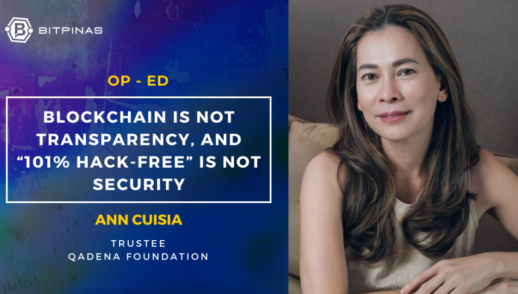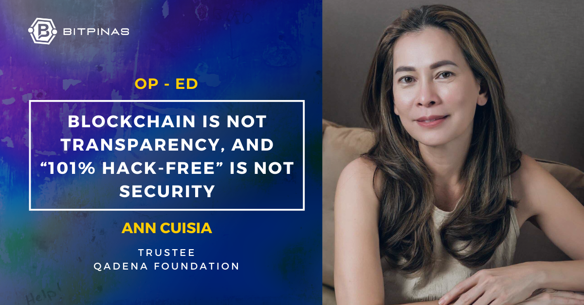 This Opinion article is published on BitPinas: [Op-Ed] Ann Cuisia: Blockchain Is Not Transparency, and “101% Hack-Free” Is Not Security