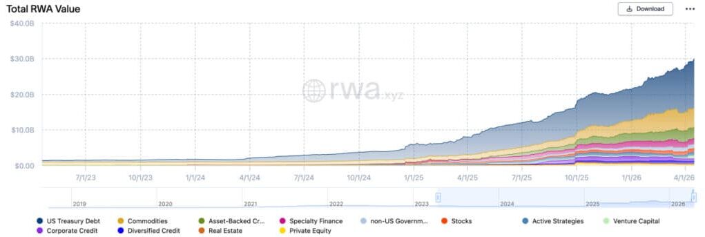 The market these rules address is already substantial. RWA.xyz currently shows $29.3 billion in distributed real-world assets, $13.4 billion in tokenized US Treasuries, and over $1 billion in tokenized public equities and ETFs. The SEC is drawing lines around a market with real users and real money in it.