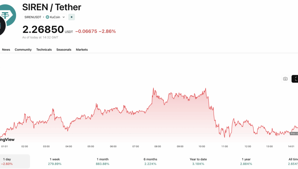 While the broader crypto market chops sideways, with Bitcoin stuck in a consolidation range, SIREN has decoupled from the pack, printing a massive +15% daily candle. The token recently hit an all-time high of $3, extending a frantic SIREN price rally that has seen values jump over +900% in just 30 days.