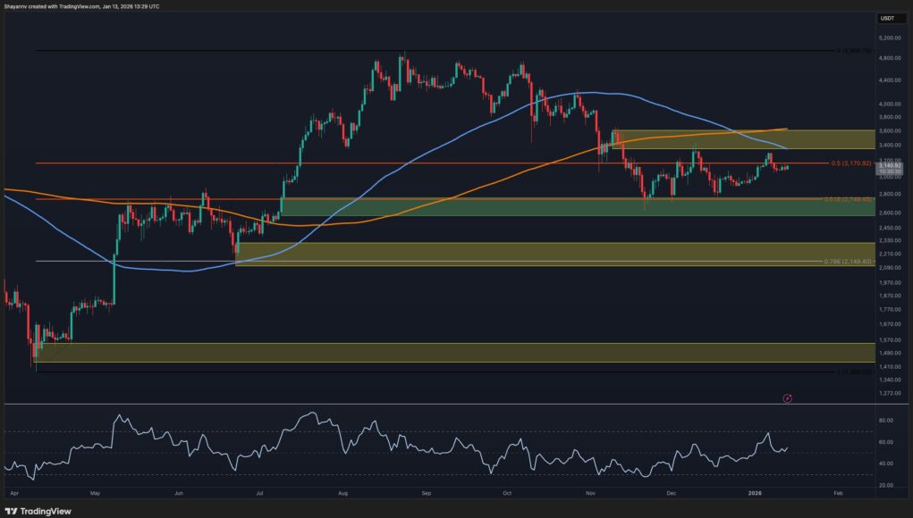At the moment, the RSI is rising once again on the 4-hour timeframe, which points to bullish momentum being dominant on lower timeframes. If ETH holds this structure, the next attempt should target the upper boundary of the triangle again. On the other hand, a breakdown below triangle support would invalidate the short-term bullish structure and shift focus back to the $2.6k demand zone.
