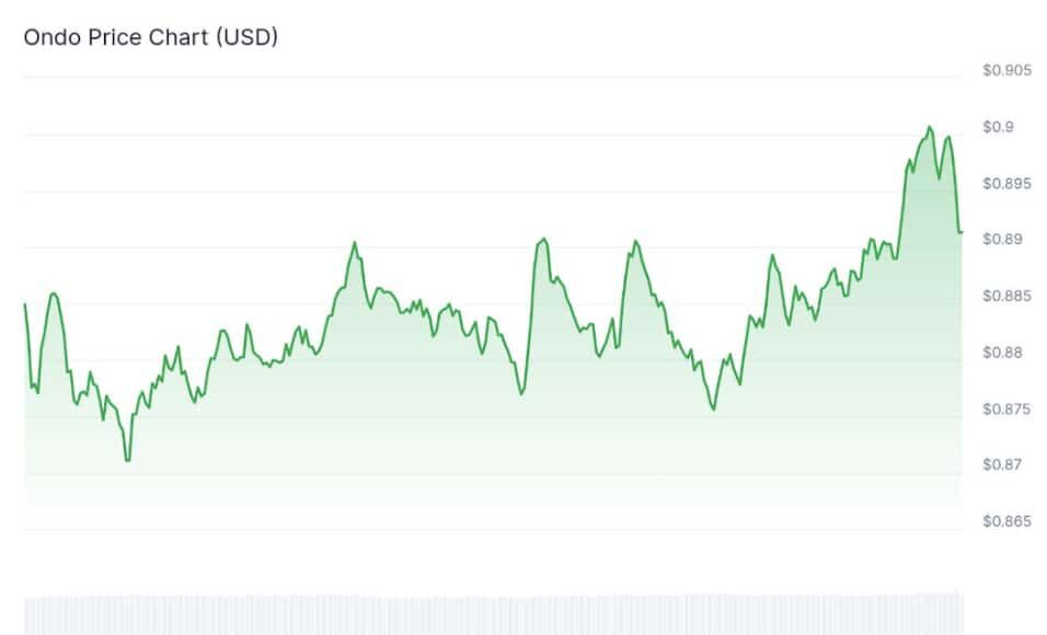 According to Coingecko, ONDO was trading at a silent level of approximately $0.90 in the last 24 hours, with an approximate volume of around $180-$186 million transactions per day.