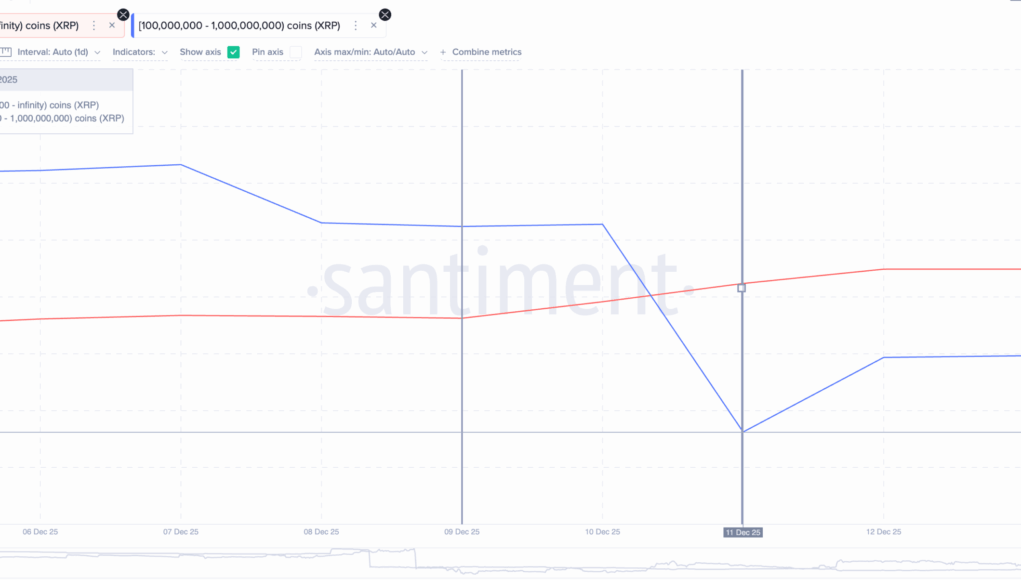 Blockchain data now shows renewed buying from major XRP holders. Wallets holding more than 1Bn tokens increased their combined balances from 25.36Bn on December 9 to 25.42Bn.